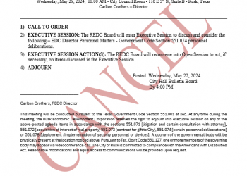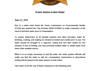 June 11, 2024| Public Notices, Resident Information, Town News| City of Rusk - CE
