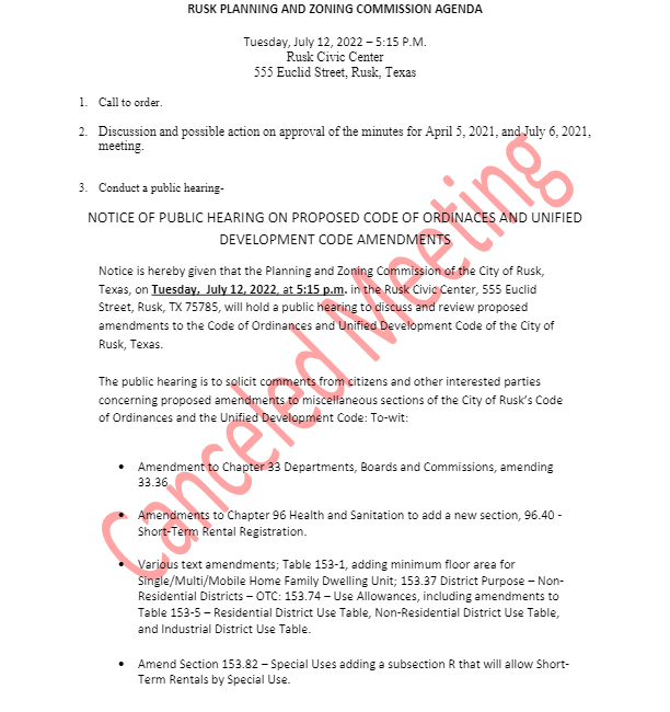 July 11, 2022| General Announcements, Public Notices, Resident Information| City of Rusk - CE
