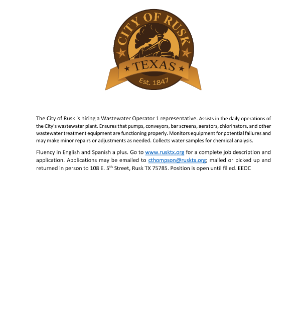 March 13, 2024| General Announcements| City of Rusk - CE